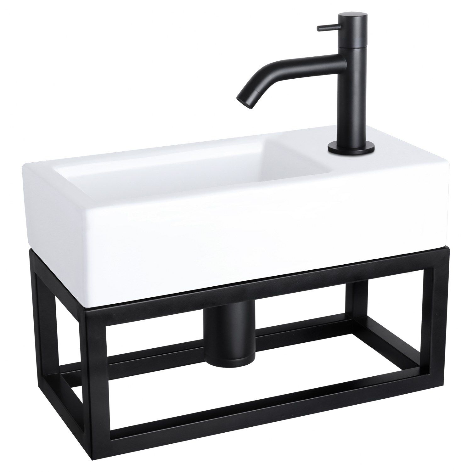 Deze combinatie bestaat uit het strak afgewerkte keramische wasbakje Ravo met mat zwarte gebogen koudwaterkraan, afvoerplug en sifon.Het handige bijpassende mat zwarte handdoekrek, waar u bijvoorbeeld uw handdoeken of andere toiletbenodigheden kunt plaatsen of hangen, maakt de set helemaal af. Het kraangat zit aan de rechtkant van dit subtiele wasbakje. Keramiek is een duurzaam materiaal, eenvoudig schoon te houden en gaat jaren mee.