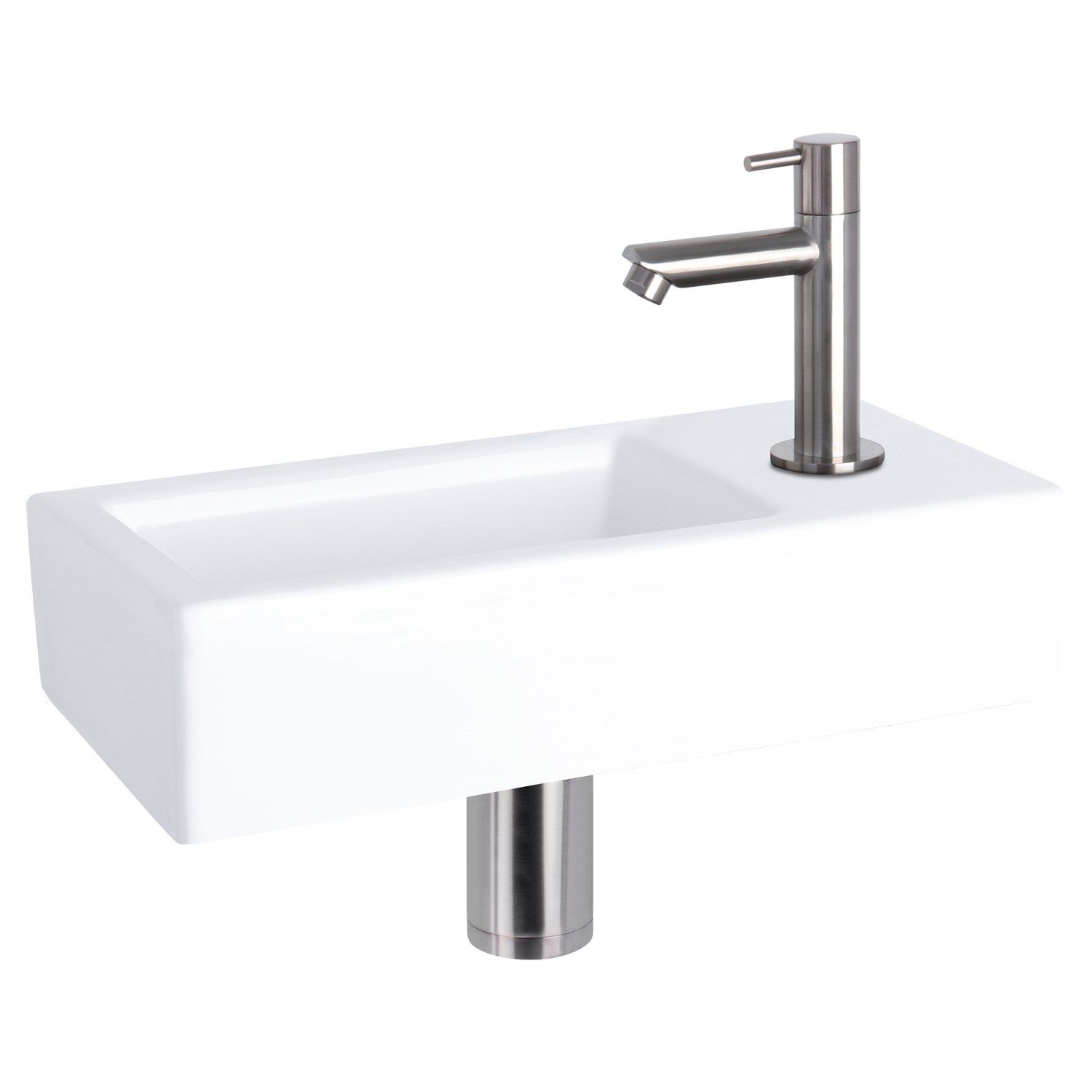 Deze combinatie bestaat uit het strak afgewerkte keramische wasbakje Ravo met mat chromen rechte koudwaterkraan, afvoerplug en sifon. Het kraangat zit aan de rechtkant van dit subtiele wasbakje. Keramiek is een duurzaam materiaal, eenvoudig schoon te houden en gaat jaren mee.