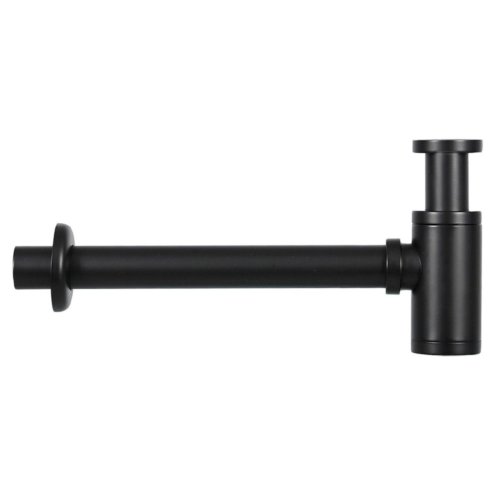 Sifon gemaakt van messing, uitgevoerd in de kleur mat zwart. De bijgeleverde muurbuis is 295 mm. en is op gewenste lengte te zagen. De hoogte van de sifon is tot 90 mm. verstelbaar.