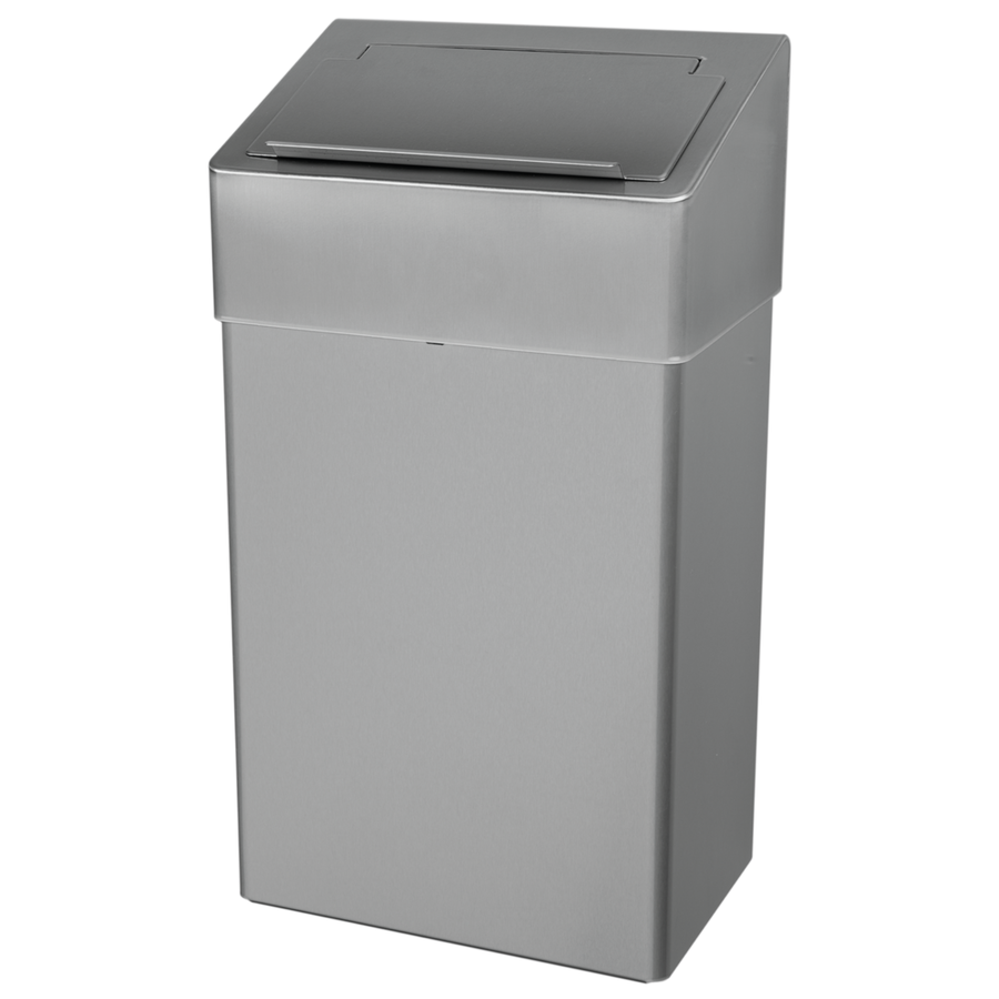 Hygiënebak 18 liter met gesloten inworpklep en binnenring. Vrijstaand of voor wandmontage.